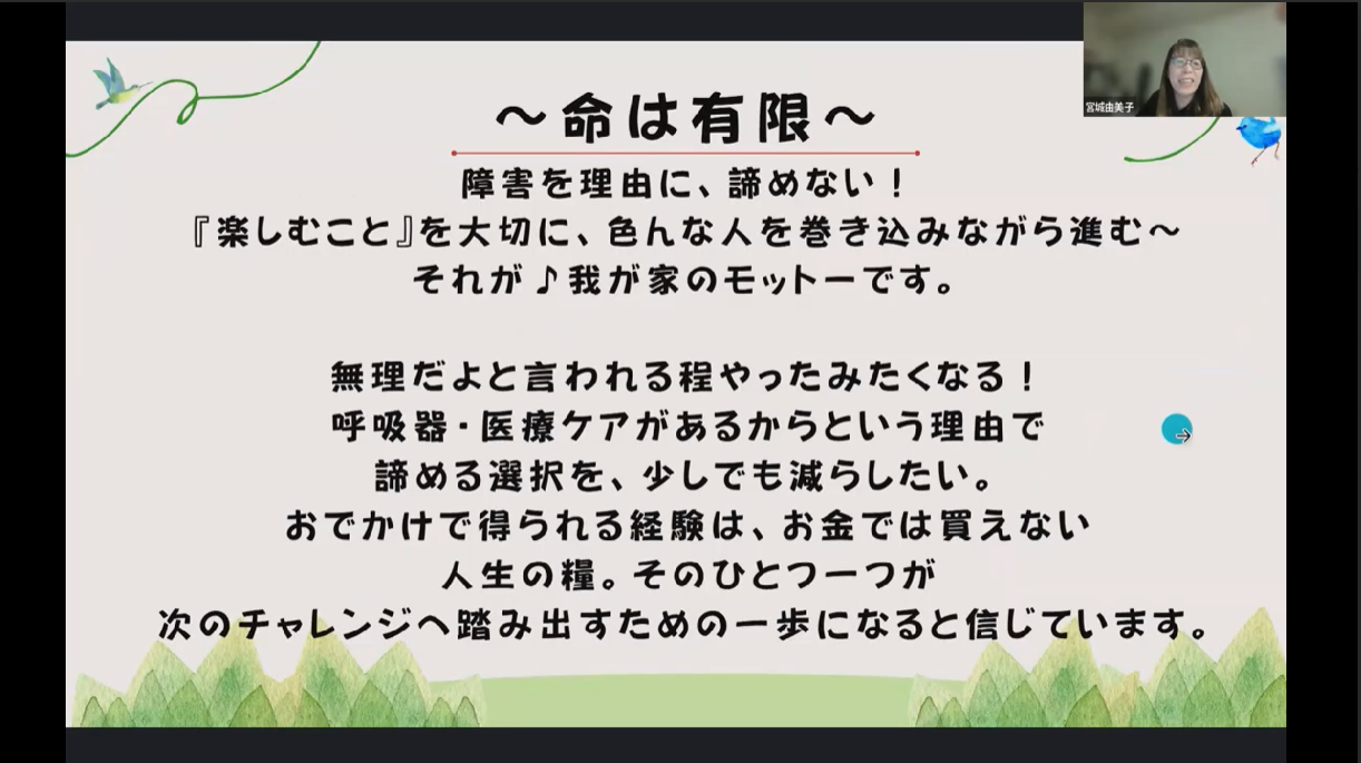 宮城さんの活動の根底にあるのは、「障害を理由に諦めない」「楽しむことを大切にする」という強い想いです。
