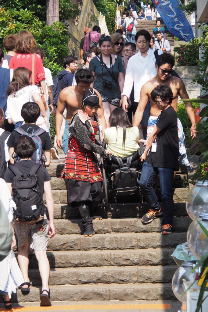「侍ゲストハウス彩」では、自作の甲冑を着た高野さんに、鎌倉の街を案内してもらうユニークなオプション体験があります。